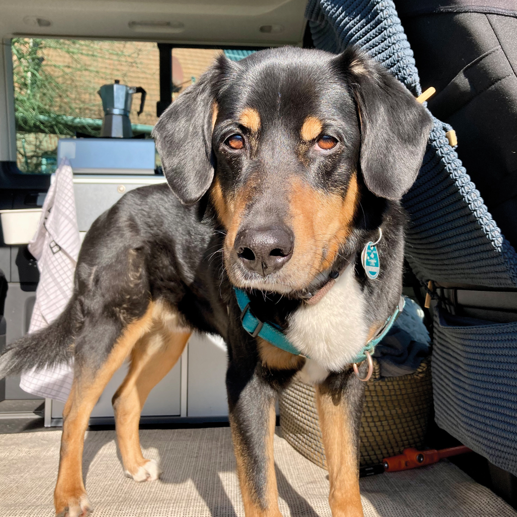 Moby versucht noch, wie immer, in den Bulli zu hüpfen, schaffst es aber kaum und ich hebe ihn rein. Ich bin sicher er weiß, was passieren wird.