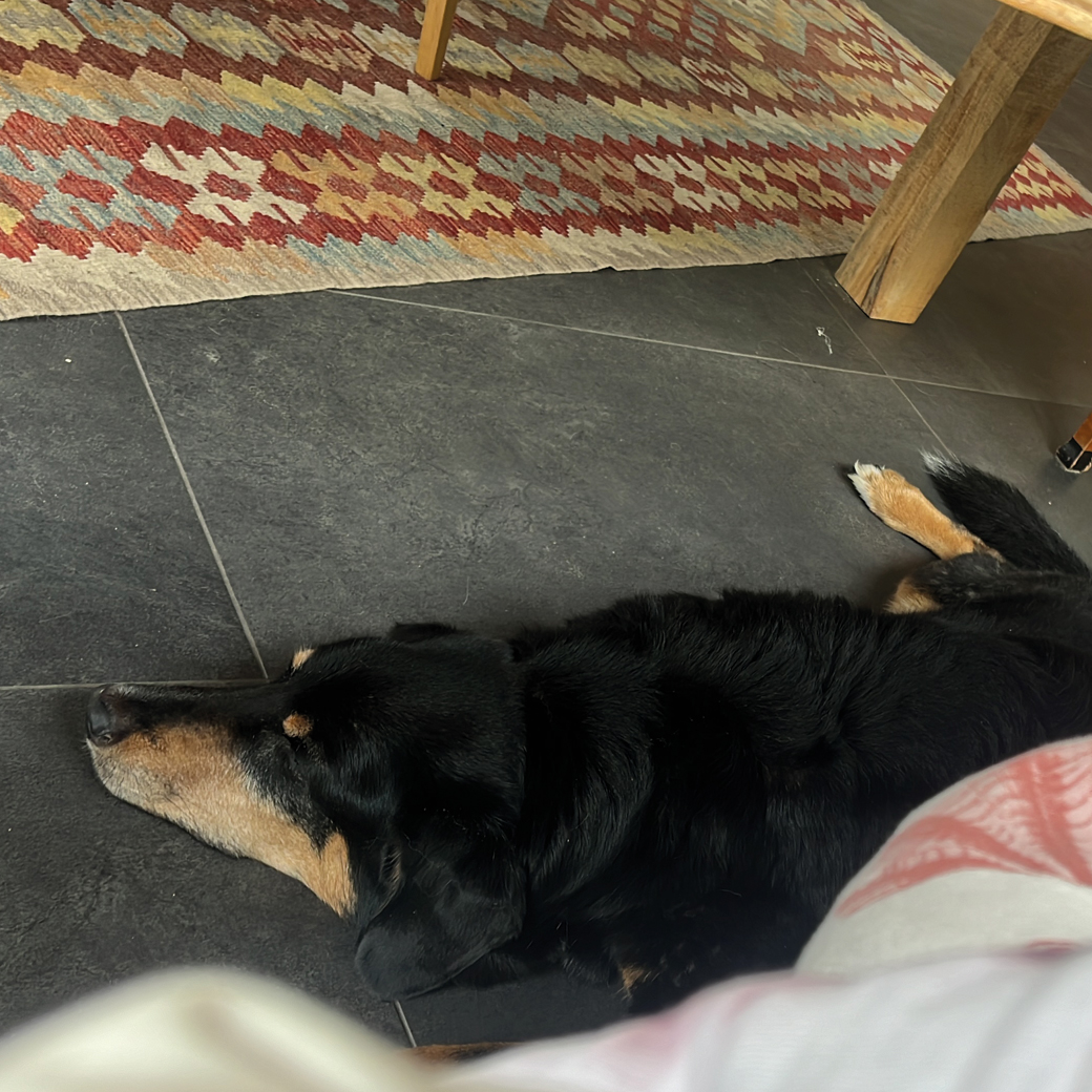 Das war der Samstag. Den Sonntag verbringt er wieder überwiegend schlafend unterm Tisch.