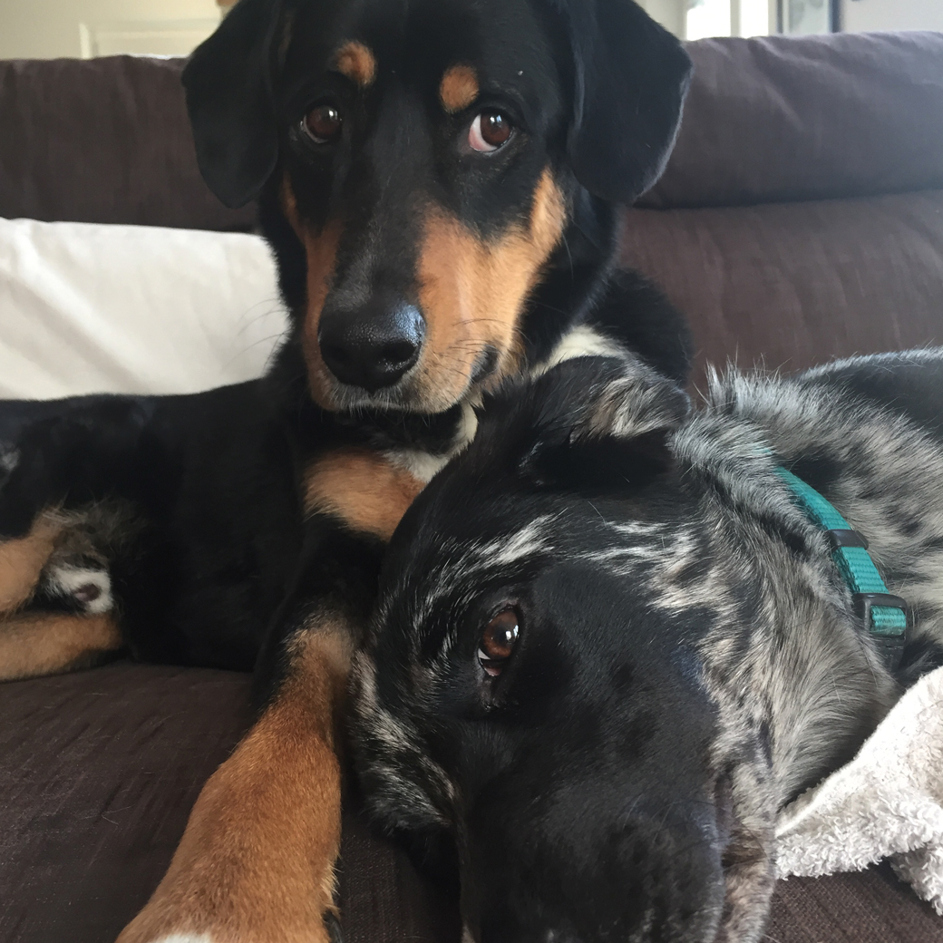 Beim letzten Mal um sechs Uhr morgens lasse ich die Terrassentür einfach auf. Ich bin mittlerweile so müde, dass ich nicht warten mag bis er wieder hereinkommt. Ich schlafe sofort wieder ein und fange an zu träumen: Mila kommt mit Moby zusammen ins Haus. Sie springt ganz wild herum, freut sich unglaublich, uns zu sehen und fordert Moby die ganze Zeit auf, mit ihr zu toben und zu spielen. Irgendwann tollen die beiden dann wirklich durchs Wohnzimmer. Moby ein wenig gemächlicher und Mila wild und quirlig, beide wie eh und je.