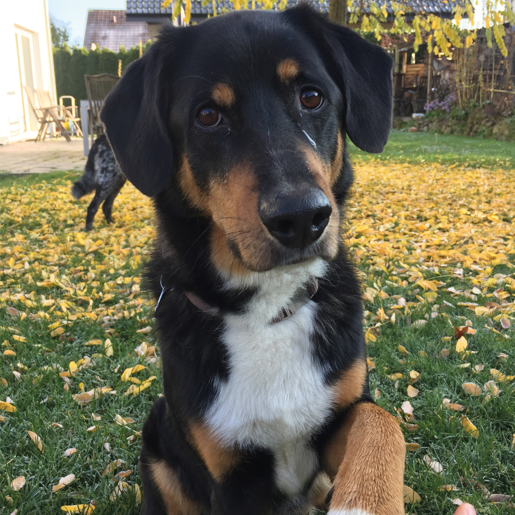 Ich weiß nicht, aber ich habe den Eindruck mein Hund hat mehr verstanden, als wir meinen. Er steht auf und schaut uns beide an mit einem Blick, wie »Los kommt mit. Es ist soweit.«, und geht zur Haustür. Ich lasse ihn raus. Er geht in den Garten, dreht langsam eine kurze Runde und steht vor der offenen Terrassentür, kommt aber nicht rein. Ich gehe zu ihm und sehe, dass ihm frisches, sehr, sehr rotes Blut aus der Nase rinnt. Dann geht ersteinmal alles ganz schnell.